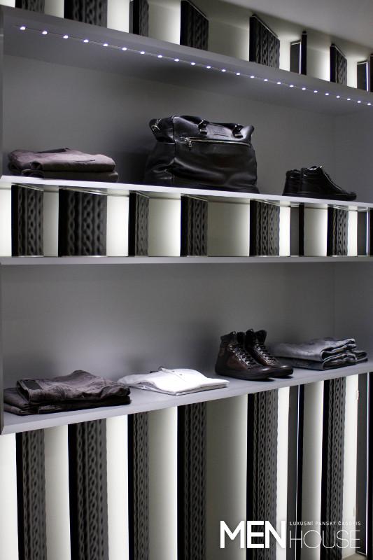Jako pozadí pro vystavené kolekce slouží průmyslové a přírodní materiály. Pozornost přitahují betonové panely zvýrazněné delikátními cementovými vzory a parketovými podlahami. Beton vystupuje z povrchu a kontrastem k němu je kožený nábytek s ozdobnými prvky. Nástěnné panely potažené kůží s reliéfními vzory pneumatik jsou zvýrazněny decentním osvětlením. Architektonické hliníkové prvky na stěnách dávají vyniknout závěsným armaturám z nerezové oceli.