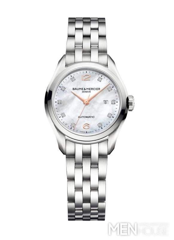 Kromě nových chronografů přibyl do linie Clifton také model ve velikosti 30 mm na ocelovém náramku. Sofistikovaný vzhled tvoří číselník z přírodní perleti osazený deseti diamanty, pozlacené štíhlé ručky, rovněž pozlacené arabské číslice 12 a 6 a malá datumka na pozici 3. Automatický strojek s rezervou nátahu 38 hodin je možné pozorovat přes průhledné spodní víčko pouzdra.
