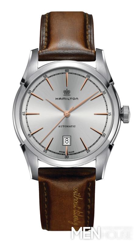 Retro model Spirit of Liberty propojuje moderní švih značky Hamilton s její historickou tradicí. Srdcem stroje je zcela nový automatický kalibr H-10 s 80-ti hodinovou rezervou chodu. Minimalistické uspořádání číselníku s útlými indexy a malou datumkou a především rafinované provedení koženého řemínku časomíře dodává nostalgický šarm. Řemínek je opatřen unikátní patinou a laserová rytina výroku „Without liberty, life is a misery.“ ho činí skutečně jedinečným. Nový Spirit of Liberty je nabízen ve čtyřech barevných variacích. Cena 21 400 Kč.