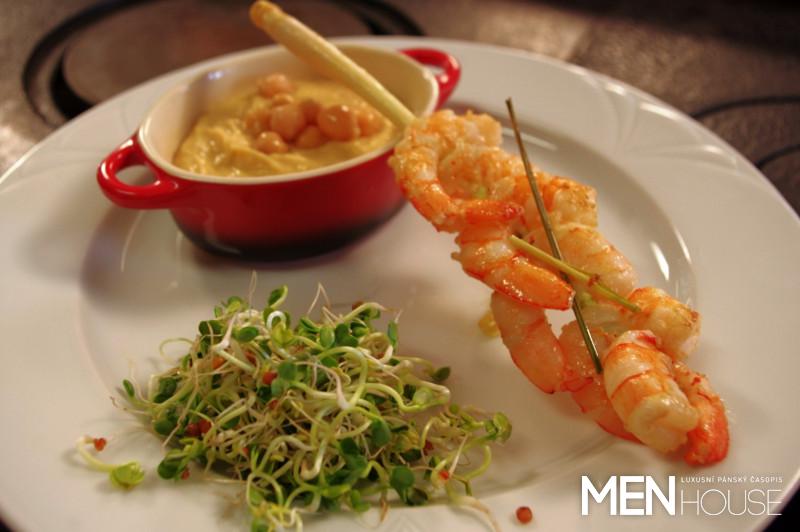 MARKÉTA HRUBEŠOVÁ: CIZRNOVÉ PYRÉ S KREVETOVÝM ŠPÍZEM