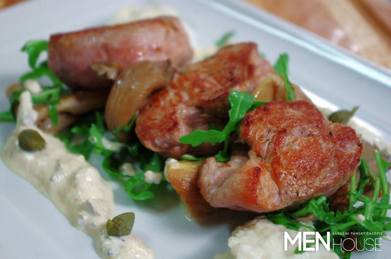 PATRIK BEČVÁŘ: VEPŘOVÉ MEDAILONKY, HLÍVA ÚSTŘIČNÁ S RUKOLOU A TOPINAMBUROVÉ PYRÉ