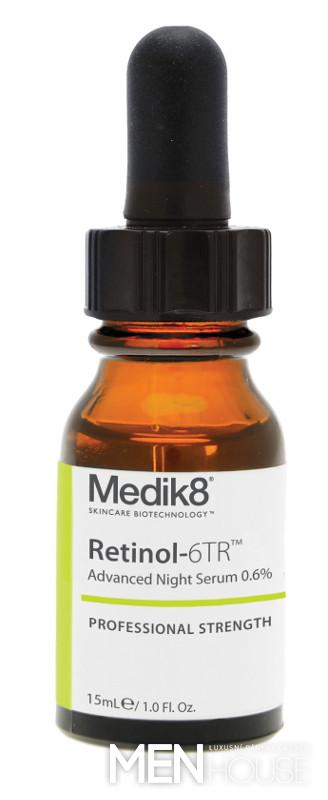 Medik8 Retinol 3 TR představuje rychle vstřebatelné vysoce stabilní noční sérum s obsahem 0,3 % vitamínu A (čistého all-trans retinolu). Přestože se jedná o vysokou koncentraci retinolu, je pro pokožku Retinol 3 TR naprosto bezpečný, a to díky unikátní patentované technologii zapouzdření aktivní látky. Díky ní dochází k uvolňování účinku postupně po dobu několika hodin, což zajišťuje nejenom efektivní redukci vrásek, ale také naprostou bezpečnost bez vzniku nežádoucího podráždění. Nenahraditelný antioxidant vitamín E (Tokoferol) ještě umocňuje účinek renitolu, stimuluje produkci kolagenu a zvyšuje hladinu kyseliny hyaluronové. Jeho působením jsou projevy stárnutí – drobné vrásky, rýhy či povadlá kůže – potlačeny, pokožka hydratovaná a navíc ochráněna před volnými radikály. Oba vitamíny jsou uloženy v jojobovém oleji, který patří mezi nejlepší konzervanty, čímž je dlouhodobě zachována jejich maximální účinnost. Výhodou jojobového oleje je, že neucpává póry, proto je sérum vhodné pro všechny typy pokožky, zároveň přispívá i k hydrataci pleti.