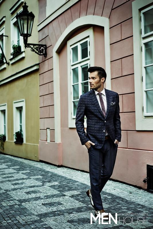 Vhodnou variantou obuvi k formálnímu oděvu jsou tzv. monk shoes. Obuv je velice jednoduchá a precizně zpracovaná, doplněná pouze o elegantní přezky. Nestárnoucí klasikou se stávají boty nesoucí název brogue neboli střevíc či bohatě zdobené polobotky derbového střihu, které by měly rozhodně zaujmout místo v šatníku moderního muže. Motýlky do business obleku dotvoří celkový vzhled outfitu a muži dodají správný lesk v podobě univerzitního vzhledu. Ke střihům je v sezoně jaro/léto 2015 přistupováno zcela novým způsobem. Obleky jsou střiženy tak, aby působily lehčeji a byly více na tělo. Silueta kalhot se zužuje a je přiléhavá, pouze v oblasti boků a pasu je uzpůsobena tak, aby se v ní muž cítil komfortně. Blažek v nové kolekci používá čistou vlnu a kašmír.