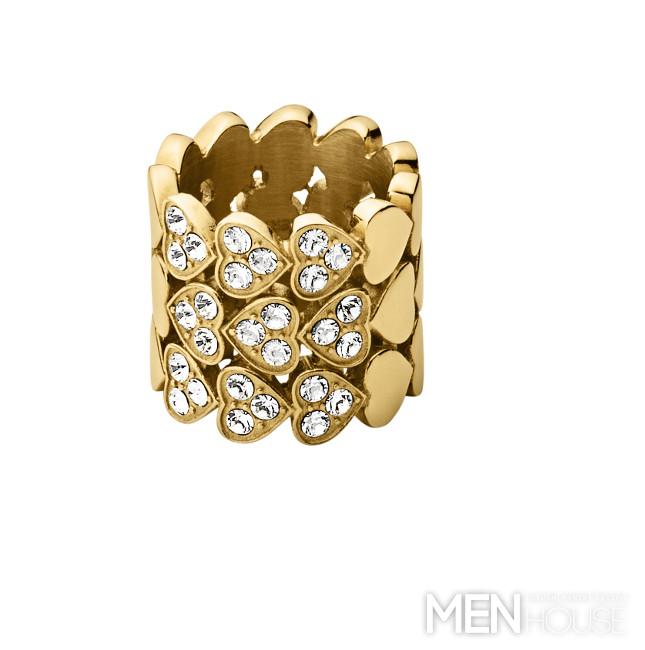 Prsteny LORETTA jsou vyrobeny z chirurgické oceli a jsou zdobené křišťály SWAROVSKI. Masivní trojřadý prsten stojí ve stříbrné barvě 2299 Kč, cena prstenu ve zlaté barvě a v barvě růžového zlata stojí 2499 Kč.