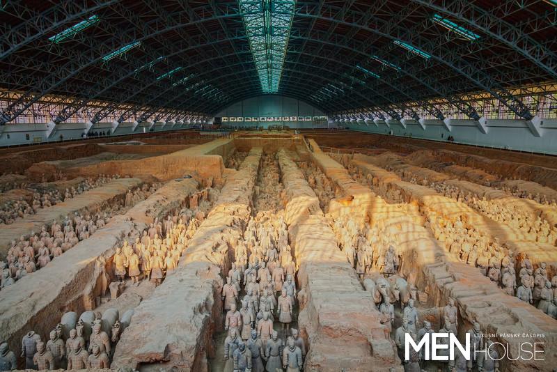 Císař Čeng (po nástupu na trůn Čchin) byl prvním panovníkem, který dokázal sjednotit Čínu, a to ve všech směrech od měny přes písmo až po jednotné míry. Vládnul diktátorským stylem, ten kdo s ním nesouhlasil, byl okamžitě zaživa pohřben a knihy, které nepodporovaly jeho ideologii, byly spáleny. Na druhou stranu nechal postavit ohromný palác, dlouhou čínskou zeď a také svou přepychovou hrobku, s jejíž výstavbou započal už během svého života. Na stavbě největšího a nejbohatšího mauzolea se podílelo 700 tisíc obyvatel po necelých 40 let! V době kdy císař zemřel, nebyla ještě hrobka dostavěna. Areál celého mauzolea se rozkládá na neuvěřitelných 46 km². Dle archeologů jsou v hrobce pohřbeni všichni stavitelé a navíc ještě dalších 500 osob, které doprovázely zemřelého císaře. Mauzoleum pocházejícího ze 3. století př.n.l. bylo objeveno čirou náhodou, když se rolníci při kopání studny v březnu 1974 propadli do starověké chodby. Archeologové následně celou oblast zapečetili a pro turisty po čase zpřístupnili největší jámu s terakotovými válečníky a pak také část druhé a třetí jámy. Navíc jsou zde vystaveny i sochy důstojníků a je možné zhlédnout videoprojekci z průběhu vykopávek. Stále však nebyla archeology odkryta hrobka samotného císaře, aby ji nepoškodili. Díky tomu je tak panovníkova hrobka jedna z nejzachovalejších na celém světě.