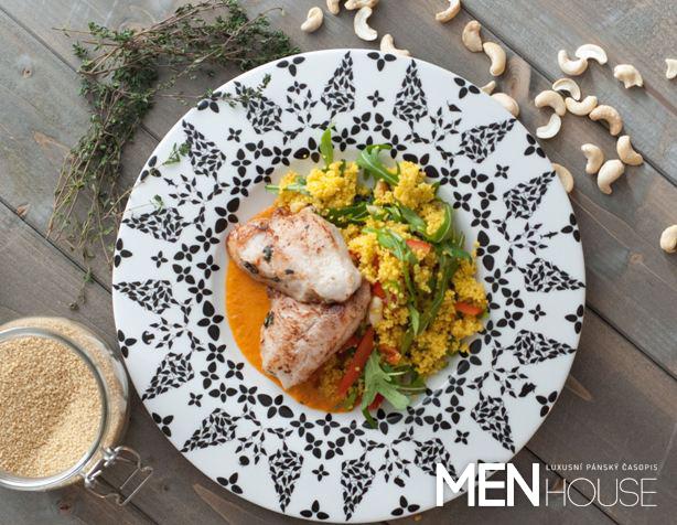 Krůtí plátky s kuskusovým salátem a paprikovou omáčkou