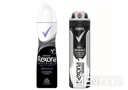 Řada dámských i pánských antiperspirantů Rexona Invisible Black + White představuje dosud nejúčinnější produkt značky Rexona, který spolehlivě bojuje proti žlutým skvrnám na bílém a bílým stopám na černém oblečení. Samozřejmostí je také 48hodinová ochrana proti pocení. Pánský antiperspirant Rexona Invisible Black + White ve spreji navíc aktuálně zvítězil ve velkém testu antiperspirantů pro muže, který proběhl ve Státním zdravotním ústavu. Muži ocenili nejen jeho 48hodinovou prevenci proti pocení, účinnou i při namáhavých činnostech, ale zejména spolehlivou ochranu před skvrnami na oděvu. Antiperspiranty Rexona Invisible Black + White jsou za nezávaznou doporučenou spotřebitelskou cenu 77,90 Kč k dostání v podobě spreje či tuhého antiperspirantu a v dámské řadě také v kuličkové variantě.