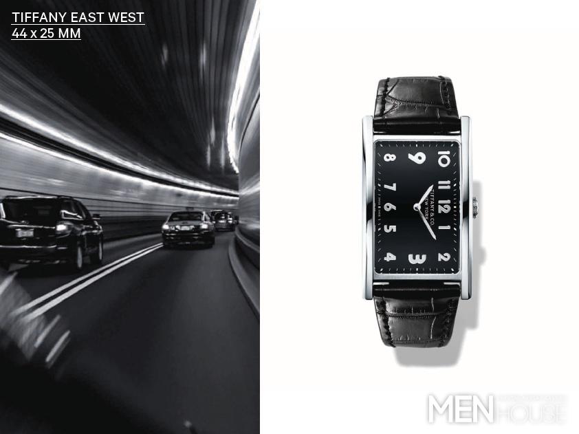 Tiffany & Co. představuje také model Tiffany East West. Tyto hodinky doslova převrací pravidla hodinářské výroby svým nezvykle otočeným obdélníkovým tvarem číselníku.
