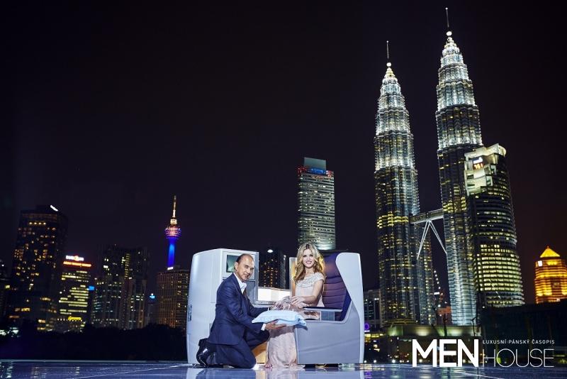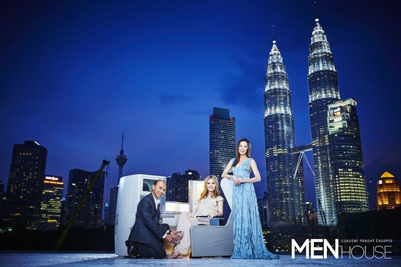 Všechny tři tváře nové linky British Airways se sešly u příležitosti velkého propagačního focení přímo v centru malajské metropole. Vznikly úchvatné snímky. Na jedné z fotografií hrají hlavní roli vedle slavných osobností také Petronas Twin Towers – známé věže tvořící městskou dominantu, jež patří k nejvyšším budovám na světě. Na fotce sedí půvabná herečka Michelle Yeoh s Georgiou May Jagger na pohodlných sedačkách business třídy Club World letecké společnosti British Airways, zatímco Jimmy Choo pózuje se svými skleněnými botami, které nezapřou jeho autorský podpis.