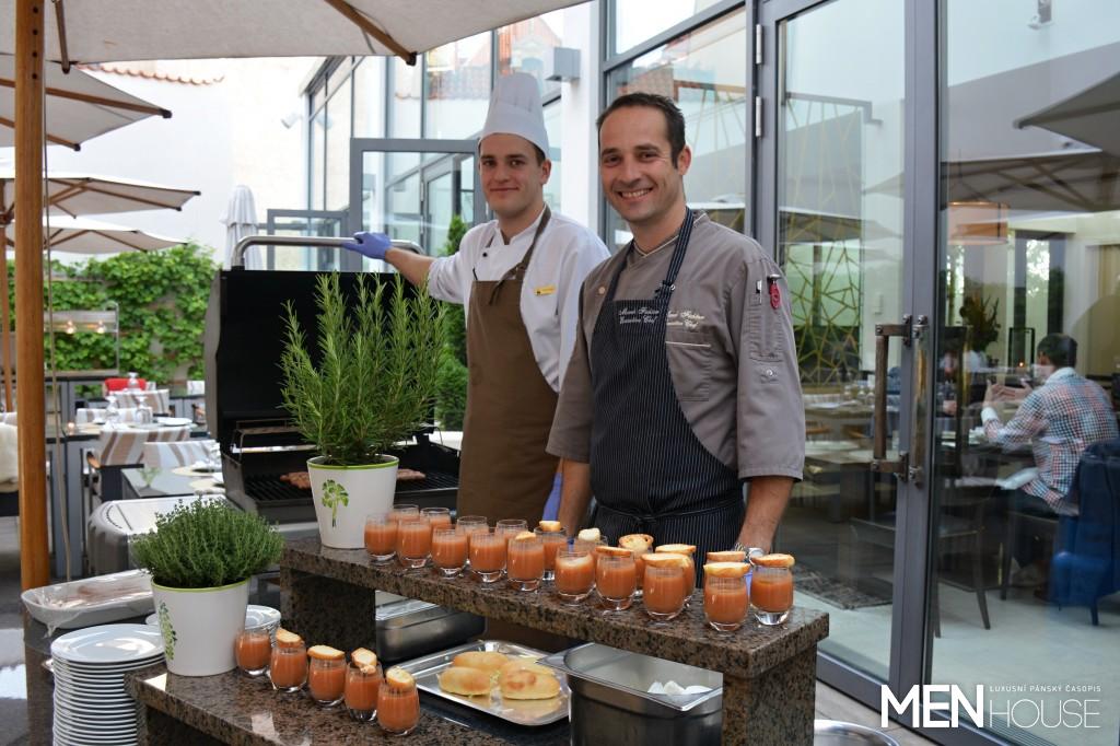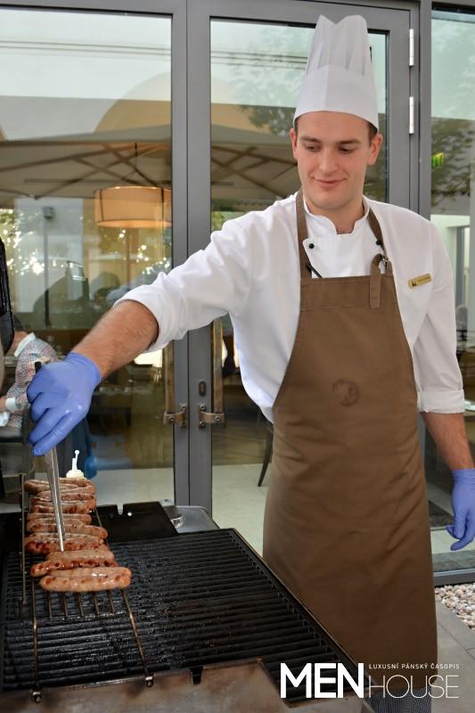 Hotel Augustin se rozhodl otevřít širší veřejnosti a s touto novinkou nás seznámili zástupci hotelu při naší návštěvě, která se dala nazvat interaktivní hrou. Aby naše návštěva byla pestřejší, dříve než bylo zahájeno samotné grilování, měli jsme možnost si namíchat Martini, koktejl složený z ginu a vermutu (gin může být vyměněn za vodku) s olivou na jehle, která zvýrazňuje chuť. Připravit jsme si mohli třeba i čaj, který se může podávat „o páté“ a navštívili jsme i hotelové pokoje a na chvíli jsme si mohli myslet, že tu na chviličku bydlíme a užíváme si výjimečnosti tohoto místa.