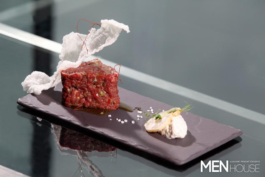Hovězí tatarák s křupavou rýžovou oplatkou, Cloud 9 sky bar & loungeJehněčí kotlety s majonézou z dračí mrkve, Cloud 9 sky bar & loungeKoktejly: Altos Margarita a Becher Cup, Cloud 9 sky bar & loungeKoktejly: Made in USA a Virgin Passion Caipi, Cloud 9 sky bar & lounge
