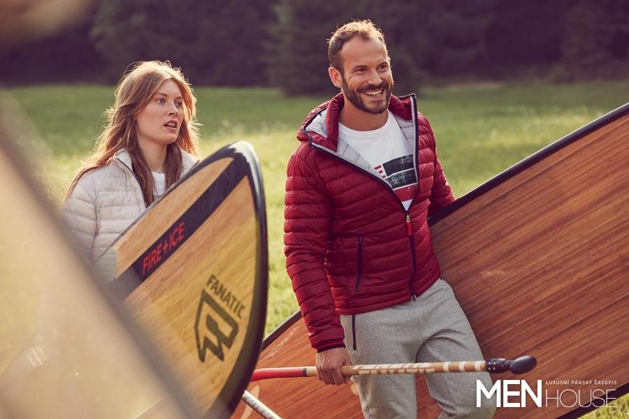 Funkční oblečení je v mužské kolekci ještě víc důležité. Bundy a vesty jsou typicky vyrobené z lehkého peří anebo jako třívrstvé voděodolné bundy. Lehké bundy a anoraky s kapucí jsou vyrobeny z péřového nylonového materiálu s funkčními detaily. Stejně jako v linii dámského oblečení je dvouvrstvá denimová větrovka s bílým kontrastním zipem je highlightem tohoto léta. Kombinuje se s jednoduchými nebo barevnými kraťasy a bermudami s trikem s dlouhými rukávy a prázdninovými vzory.