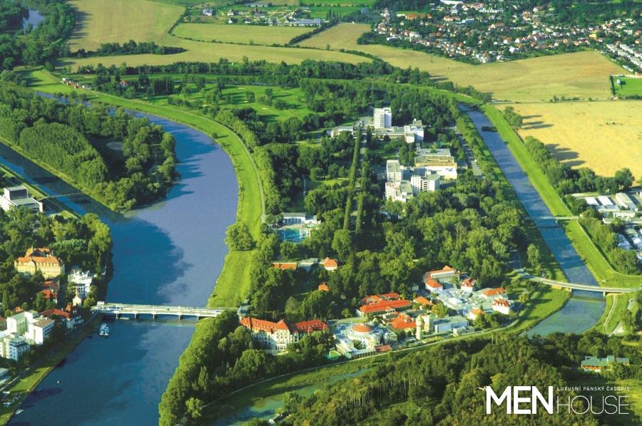 Lázeňský ostrov Piešťany, letecký pohled, Danubius Health Spa Resort Esplanade