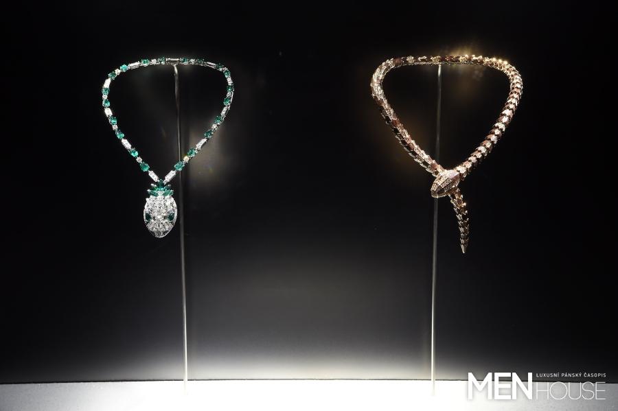 Důležitým momentem výstavy je odhalení dvou nových Serpenti High Jewellery náhrdelníků, přičemž jeden je z růžového zlata s šupinami zdobenými diamanty a exotickým dřevem, které se používá například při výrobě houslí. Druhý platinový náhrdelník, vyobrazující hadí hlavu s hypnotizujícím pohledem, je zdobený diamanty a smaragdy.