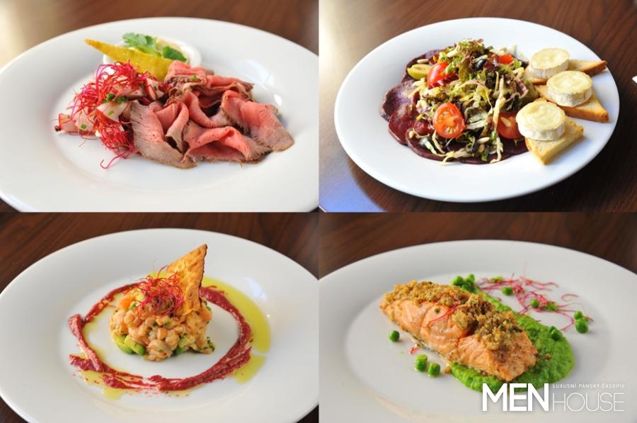 Milovníci masa se mohou těšit na kuřátko v parmazánové krustě servírované s pečeným fenyklem a bramborovým škubánkem, kančí kýtu na víně či na grilovanou krkovici s hříbky a kaštanovým pyré. V denní nabídce obědového menu se často objevují staročeská jídla, třeba houbový kuba s husím prsíčkem. A nesmíme zapomenout ani na znamenité dezerty, především skvělé horké višně v čokoládě podávané s citronovým sorbetem.