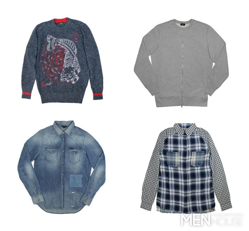 Motorkářské detaily se objevují i na kalhotách, kabátech a sportovním oblečení a kožené bundy jsou posety druky v čele se symbolem značky Diesel – vlkem.