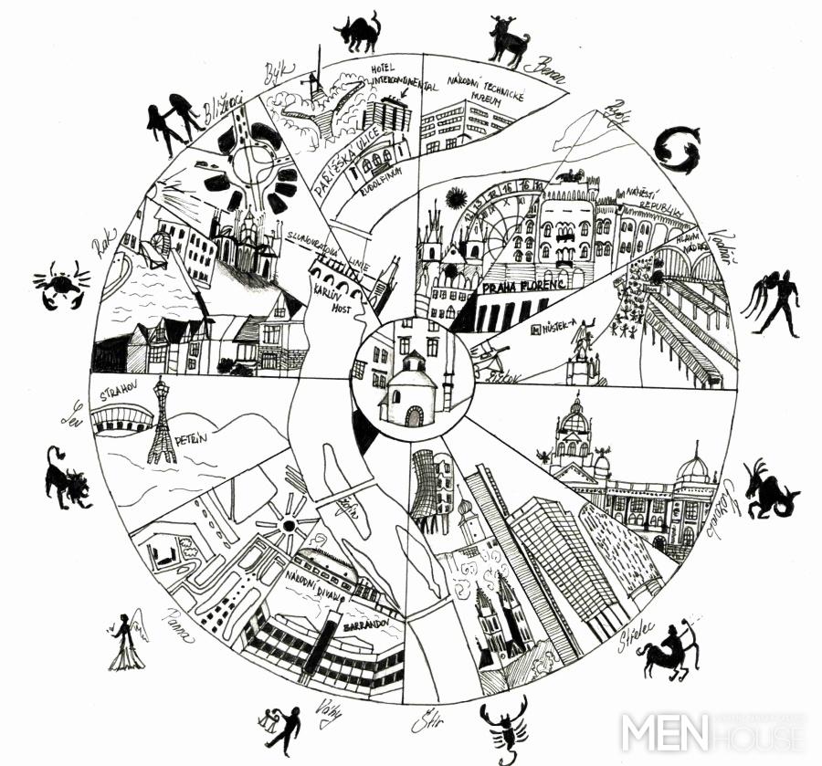 My, běžně žijící občané, o skulinách ve zdech našeho města víme jen pramálo z hodin vlastivědy, kdy nás učili, že základní kámen Karlova mostu položil král na radu astrologů 9. 7. 1357 v 5 hodin a 31 minut (datum dává při řazení řadu lichých čísel 1-3-5-7-9-7- 5-3-1, která se čte stejně z obou stran). Věřilo se, že podobné hříčky mají vyšší ochranný význam. Založení velké stavby v ten den navíc neobyčejně přála i poloha nebeských těles. Karlův most však není jediným příkladem astrologicky propočítané stavby; málokdo (novodobé architekty nevyjímaje) ví, že Karel IV. rozdělil Prahu na dvanáct výsečí podle znamení zvěrokruhu, a každá z nich má svůj strategický význam. To je důvod, proč na dobrou párty zamíříte spíše do sféry volnomyšlenkářského Vodnáře než na území Kozoroha, který uznává trvalé hodnoty. Podrobně se o těchto astrologickoastronomických souvislostech dozvíte v odborné publikaci Praga Mysteriosa od RNDr. Milana Špůrka, zábavnější formu však představují fascinující prožitkové procházky PRAŽSKÝ ZVĚROKRUH, pořádané společností ASTROPRAHA.CZ, inspirované právě touto knihou. Sjednala jsem si schůzku s jejími představiteli v kavárně U Chlupatýho ducha, která je v těsném sousedství rotundy sv. Kříže. Ta je právě energetickým středobodem Prahy, odkud se linou jednotlivé sféry.