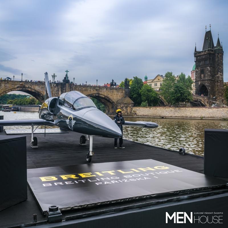 Čeští diváci se pak včera mohli s letadlem české výroby, které značka využívá v rámci svého programu akrobatického létání Breitling Jet Team, rozloučit velmi originálním způsobem, a to umístěním letadla na speciálním pontonu na řece Vltavě před Karlovým mostem.