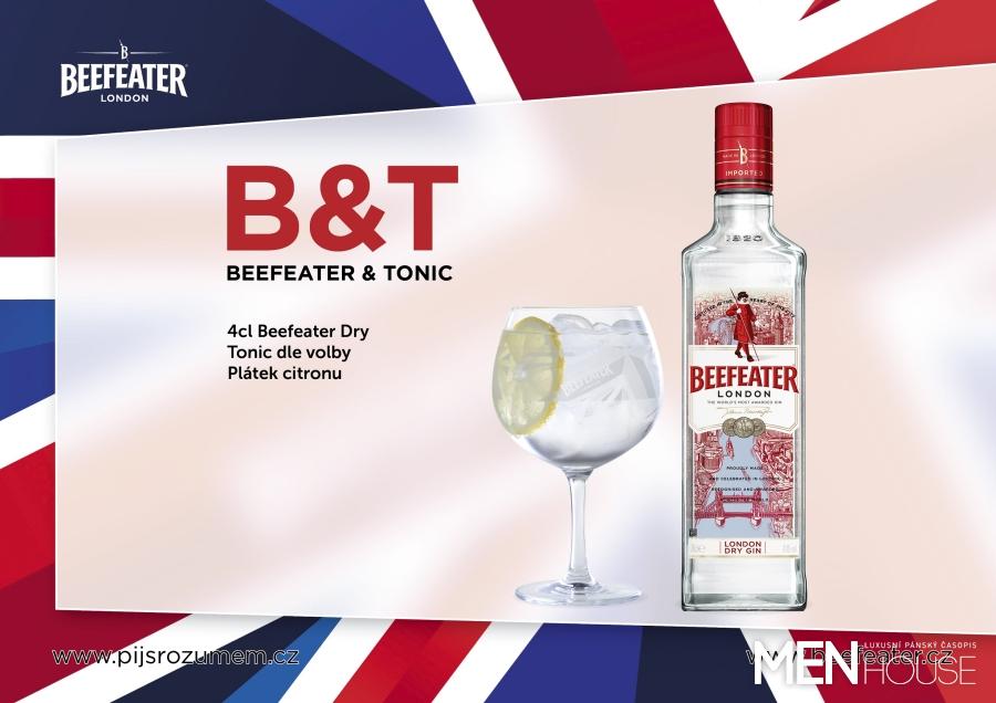 Vychutnejte si ho v legendární kombinaci Gin a Tonic. B&T, tedy Beefeater & Tonic, je osvěžující drink, který získáte jednoduchým smícháním ginu Beefeater London Dry a toniku, které na závěr dozdobíte plátkem citronu.