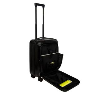 I obsah je řešen velmi rafinovaně – zavazadla byla vybavena externí přední kapsou a přehledným organizérem s prostorem na notebook, tablet nebo mobil, držákem na tužky, kovovou karabinou na klíče a speciálním pouzdrem pro bezpečné uložení hotovosti, platebních karet, pasu a dalších důležitých dokumentů.