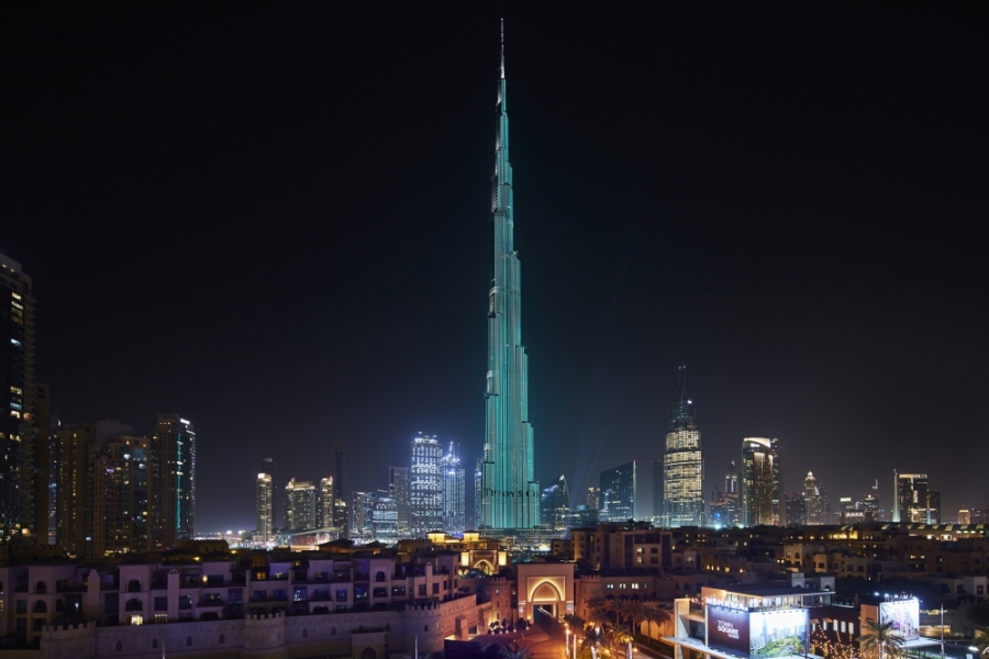Burj Khalifa lit in the iconic Tiffany Blue, Tiffany & Co.
