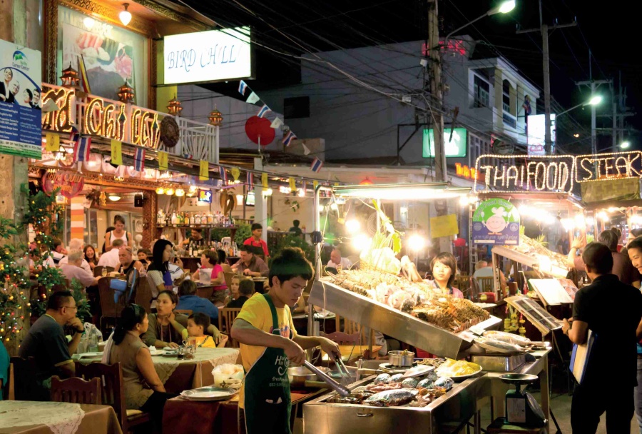 Jsem na místě. Gastronomická jízda začíná na ostrově Koh Samui, východně od thajského pobřeží. Princip, který hodlám uplatňovat je jedno hluboké filosofické pravidlo, které čerpá z celosvětově uznávaného myslitele Harryho Pottera, který v prvním díle své biografie pravil: „Dáme si všechno!“ - věta, která člověku změní život a bohužel i velikost kalhot. O tři čísla. Vystupuji z letadla a mám hlad. Takže hned, jakmile dorazím do bungalowu, vyrazím na lov. Jenom cestou autem z letiště už si člověk připadá vážně jako na druhé straně planety. Vzduch je jinej a kabely elektrického vedení taky. Podél silnice stánky s ovocem (banány, duriany, mangostany a dragon fruit), občas se někde opékají špízy z bůhvíčeho (to se ještě zjistí!) a sem tam se mihne bar na kolečkách. Zapluju teda do první hospůdky, která se naskytne. Občas se vám to budou snažit ulehčit, takže místo menu dostanete 5 zatavených fotek jídel, která jsou zrovna aktuální. Takže obsluze nakonec jednu podáte, že jste si jako vybrali. Upřímně. On ten obrázek stejně nepomůže.
