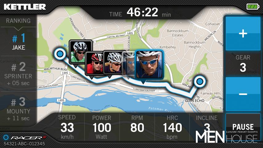 Při propojení trenažéru s chytrým telefonem lze například uspořádat online závody, nebo porovnat svůj čas s ostatními uživateli z komunity KETTFIT. Využít můžete také doplňující software World Tours 2.0, se kterým lze trénovat na reálných trasách po celém světě. Trenažér lze díky výškovému i horizontálnímu nastavení sedla a řídítek individuálně přizpůsobit postavě cyklisty, sedlo a řídítka můžete vyměnit za vlastní, z oblíbeného jízdního kola. Cena 49 990 Kč
