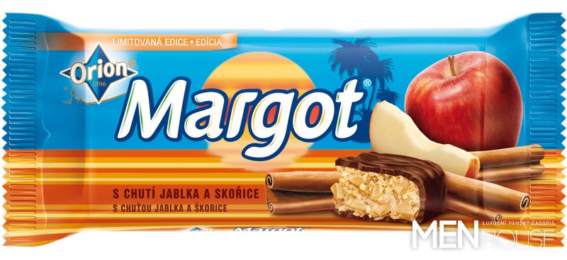 Novou Margot s chutí jablka a skořice určitě nepřehlédnete ani v obchodě – její žlutohnědý obal nápaditě obohacuje tradiční modrý obal s palmami a zapadajícím sluncem. K dostání bude v balení o velikosti 90 g za doporučenou maloobchodní cenu 15,90 Kč.