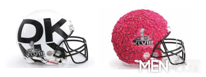 U příležitosti letošního finále Super Bowl XLVIII se spojila hrubá síla amerického fotbalu s jemnými prsty módních návrhářů a k příležitosti této světové show vznikly speciální helmy, které jsou k dražbě na internetu do 2. února. Celkem bylo navrženo pro tuto velkolepou událost 48 helem, jelikož se jedná o 48. ročník Super Bowlu. Logo velkolepé show je ostatně vyobrazeno na většině helmách. Jedním ze známých návrhářů je Donna Karan, která navrhla černo bílou helmu s logem finále letošního Super Bowl. Cena této helmy se zatím vyšplhala na 875 dolarů. Další návrhářkou je Betsey Johnson. Její výtvor je pokryt růžovými květy růží a v dražbě si vede zatím o něco lépe, cena je nyní 1107 dolarů.
